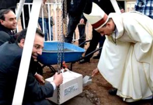 Bendición de la Primera piedra de la Basílica de Guadalupe por el papa San Juan Pablo II en Roma.